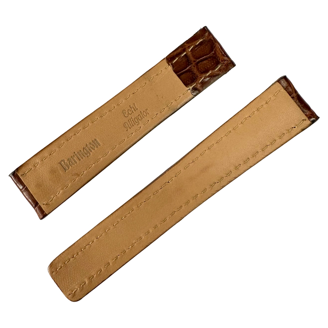 Deze horlogeband van het luxe-merk Barington is een horlogebandje dat qua maten exact past aan de Breitling horloges met de speciale Breitling vouwsluiting: een vouwsluiting waarbij het einde van de lange bandhelft onder de vouwsluiting door loopt. Deze horlogeband is gemaakt van echt alligatorleer.