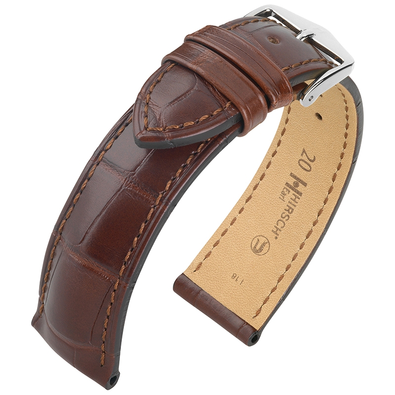 Hirsch Earl Louisiana Alligator Horlogebandje Semi-Mat Bruin - 24mm