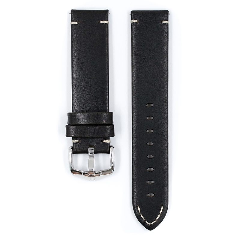 De band beschikt over deoratief contrast-stiksel bij de gesp, aan de punt en aan het uiteinde, om de "home-made" uitstraling te onderstrepen. De roestvrij stalen gesp heeft een extra brede doorn, waardoor de Hirsch Ranger ook buitengewoon goed geschikt is voor horloges van bijvoorbeeld Maranez of Panerai, omdat de merk-gesp op de band kan worden overgezet.