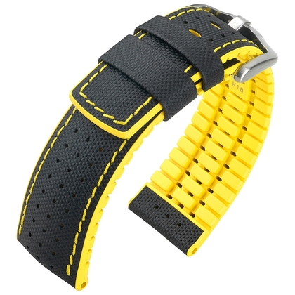 Hirsch Robby Performance Horlogeband Zwart Leer / Geel Rubber