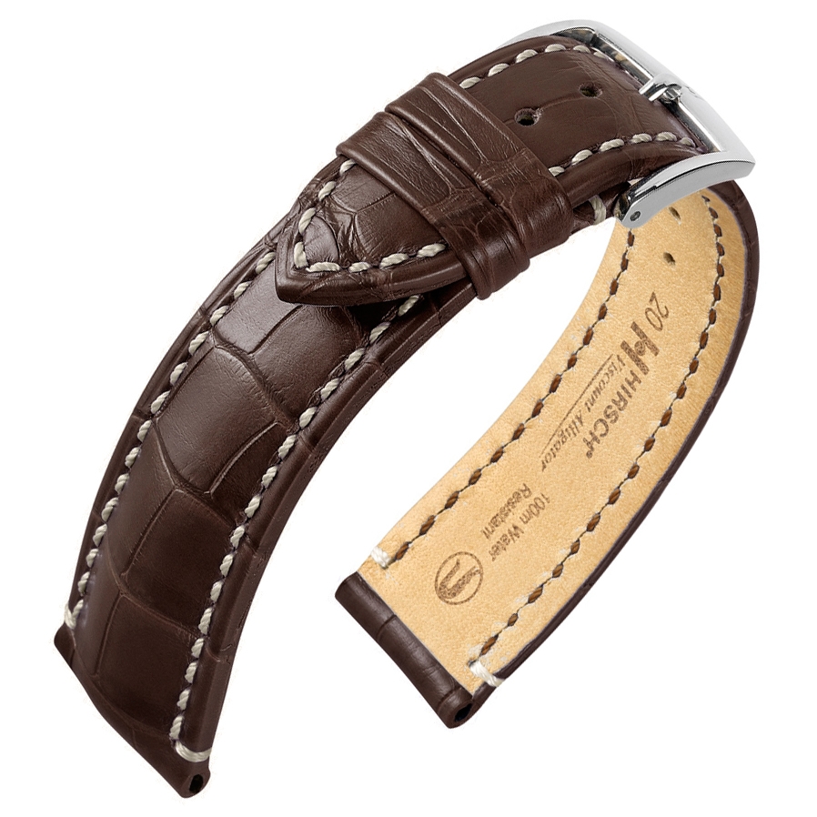 Hirsch Viscount Louisiana Alligator Horlogebandje 100m WR Semi-Mat Bruin