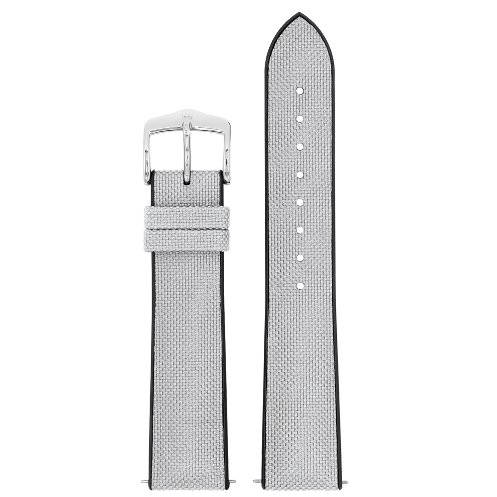 De nieuwe Hirsch Arne is een puristische kombinatie van bijzondere ingredienten: de toplaag is gemaakt van recycled PET materiaal dat uit de oceaan is opgehaald (geweven in zeildoek motief), op de hightech horlogeband van soepel Hirsch Premium Caoutchouc rubber.