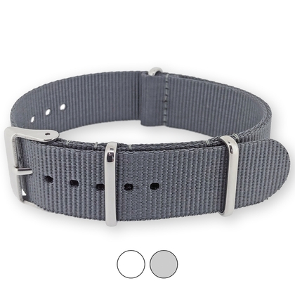 De grijze NATO band is gemaakt van extra sterk geweven nylon. Alle randen en gaten zijn door middel van laser gesealed, waardoor de horlogeband geen ruwe of rafelige randen heeft.