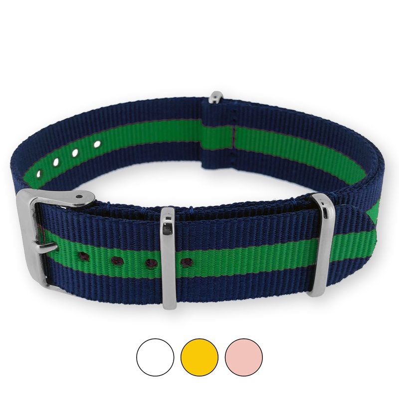 Deze blauw en groene NATO band is gemaakt van extra sterk geweven nylon. Alle randen en gaten zijn door middel van laser gesealed, waardoor de horlogeband geen ruwe of rafelige randen heeft.