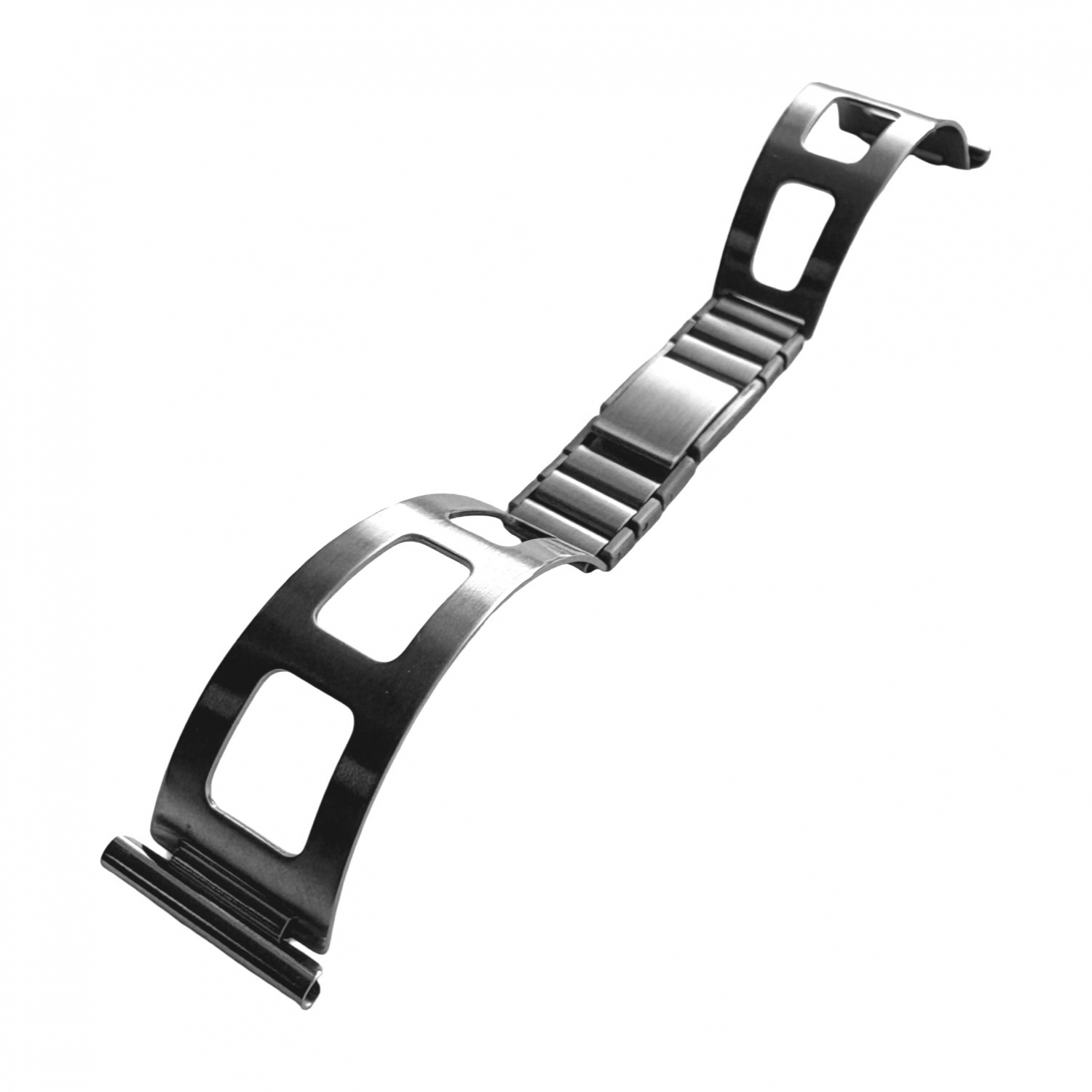 Deze horlogeband is bij de sluiting in twee standen in te stellen en de schakels links en rechts van de sluiting kunnen per stuk worden verwijderd om de band eventueel in te korten.